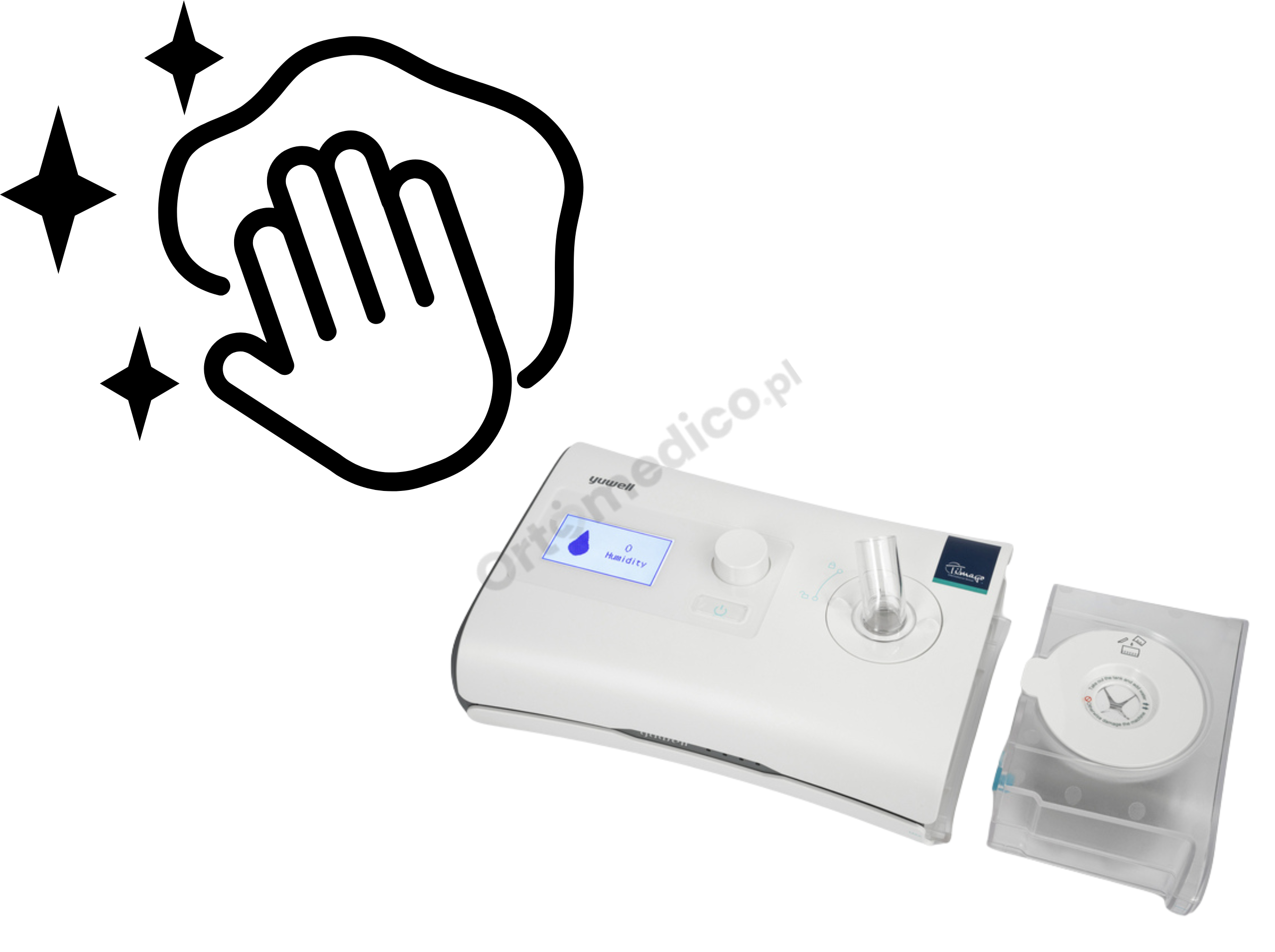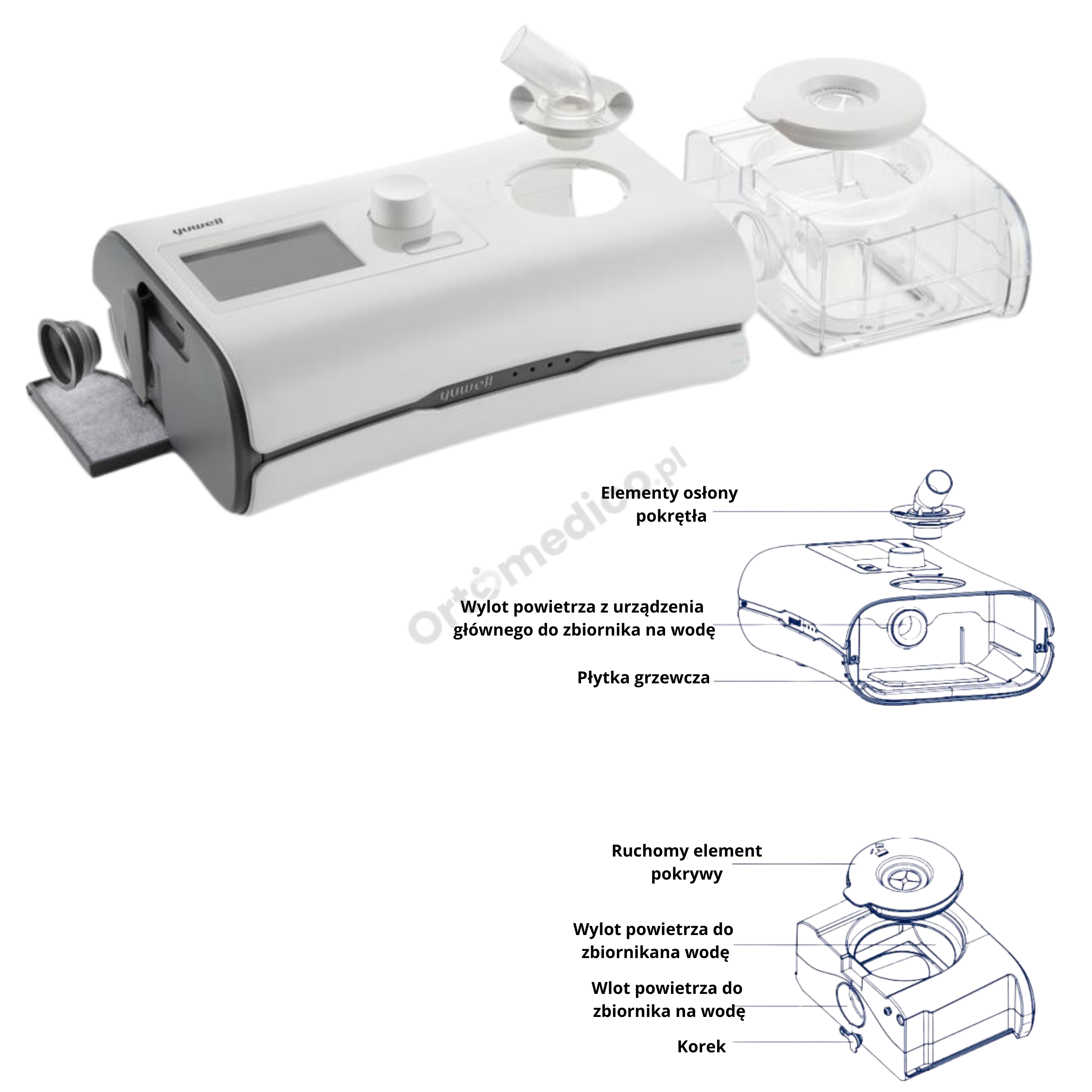 ✔ Podgrzewany nawilżacz – zapobiega suchości jamy ustnej i nosa