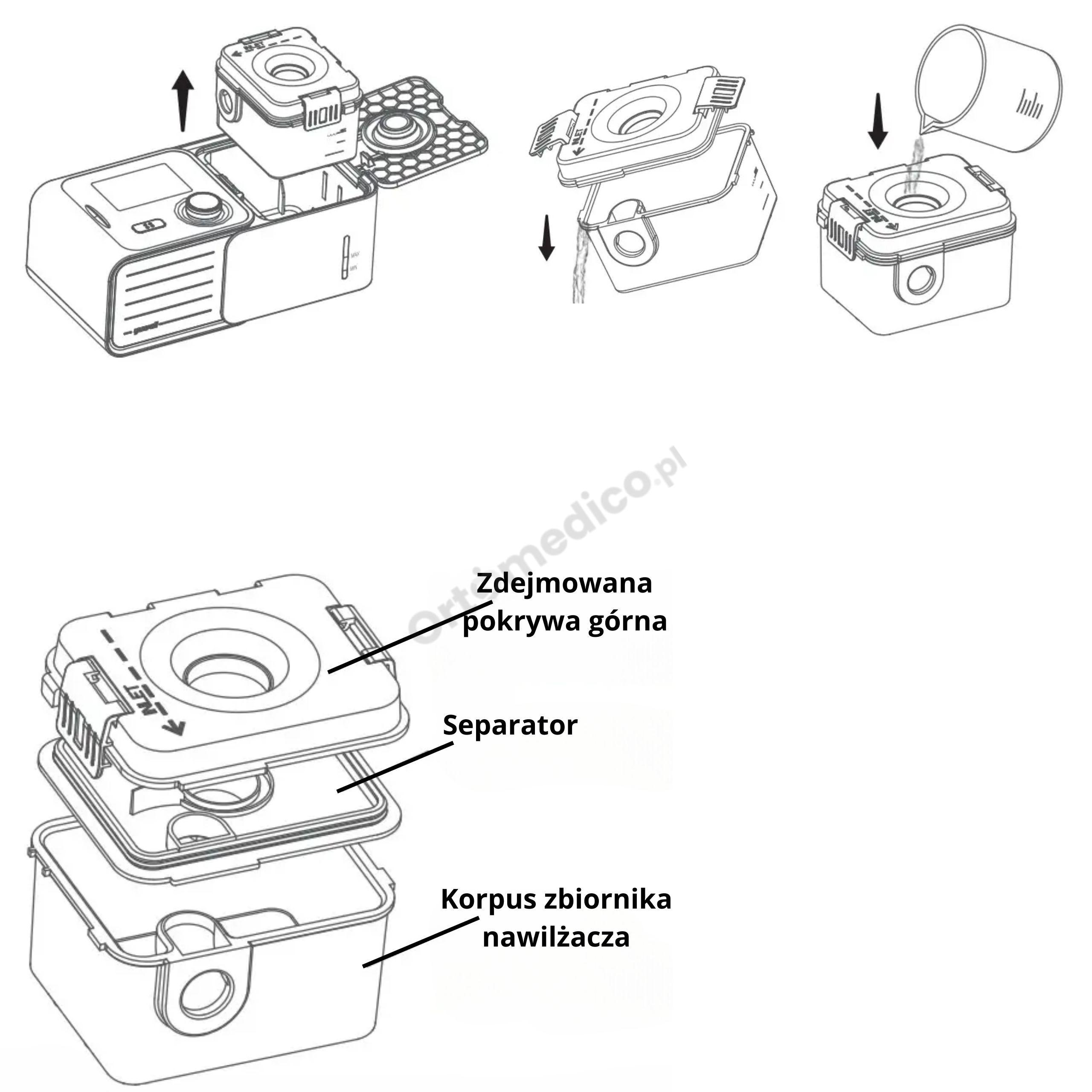 ✅ Raz w tygodniu – mycie zbiornika nawilżacza i przewodu powietrznego ciepłą wodą.