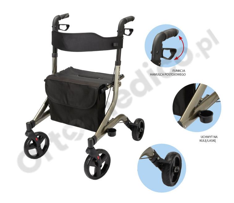 Uchwyt na kulę/laskę: Umożliwia łatwe przechowywanie i transport kuli lub laski, zwiększając mobilność użytkownika.