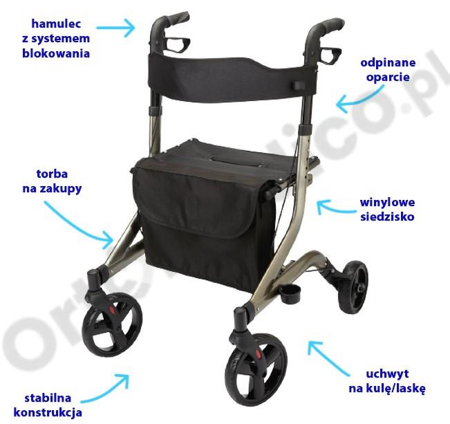 - Często polecany seniorom lub osobom po urazach ortopedycznych, którzy muszą stać i poruszać się bardzo ostrożnie.
