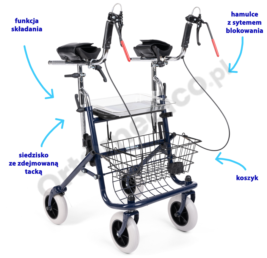 Podpórka stalowa czterokołowa z podparciem na łokcie Lena Timago TGR-R RS 8811 zalety produktu: