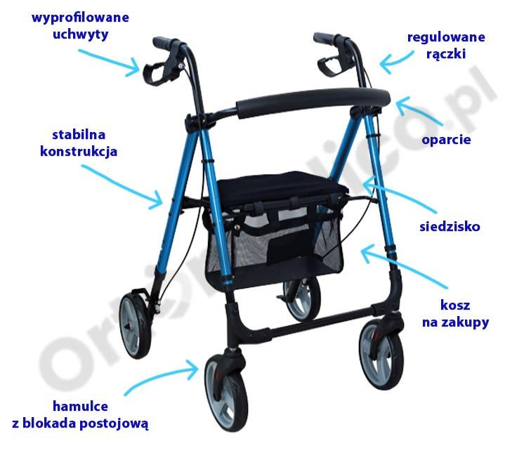 - Często polecany seniorom lub osobom po urazach ortopedycznych, którzy muszą stać i poruszać się bardzo ostrożnie.