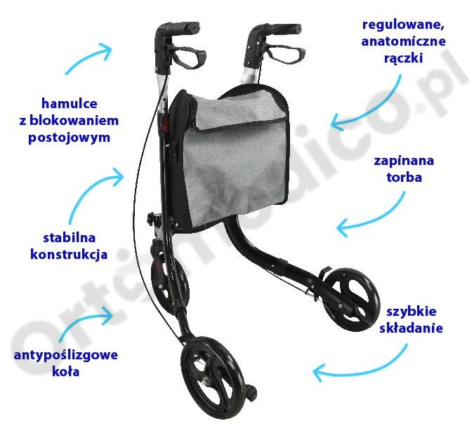 - Dobrze sprawdza się u osób, które mają problemy z równowagą, ale chcą poruszać się szybciej, np. w domu lub na zewnątrz.