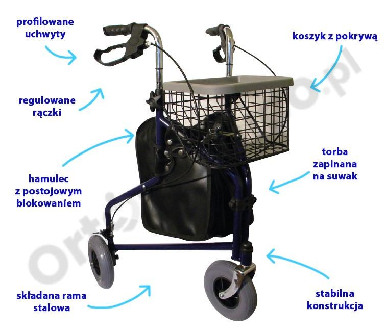 Trójkołowy balkonik AR-004 ARmedical z koszykiem i torbą zalety produktu: