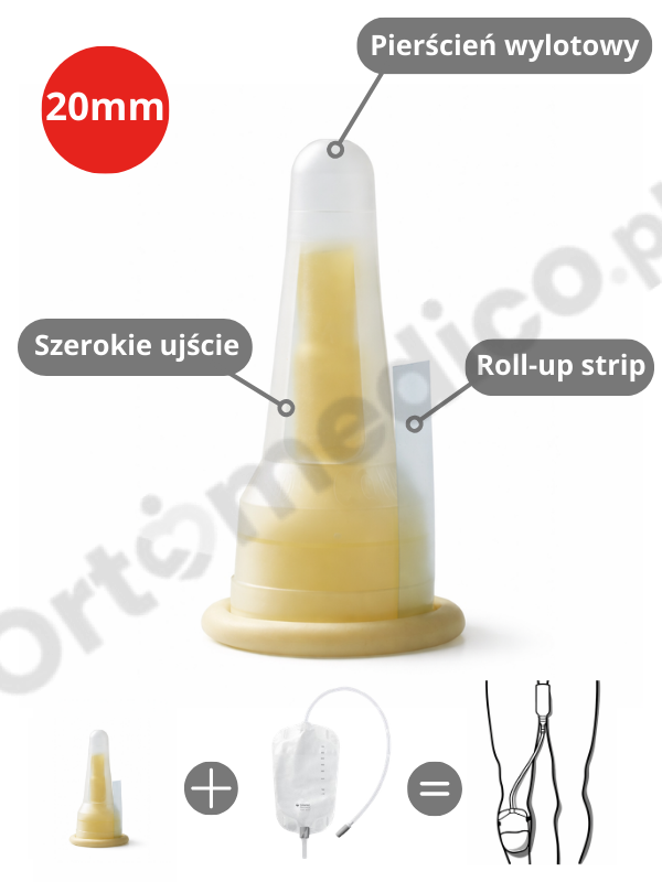 Cewnik zewnętrzny Coloplast Conveen 20 mm to jednoczęściowy, samoprzylepny cewnik męski przeznaczony do bezpiecznego i higienicznego odprowadzania moczu do worka na mocz. Produkt stanowi wygodne rozwiązanie dla mężczyzn z problemem nietrzymania moczu, zarówno w warunkach domowych, jak i w opiece długoterminowej.