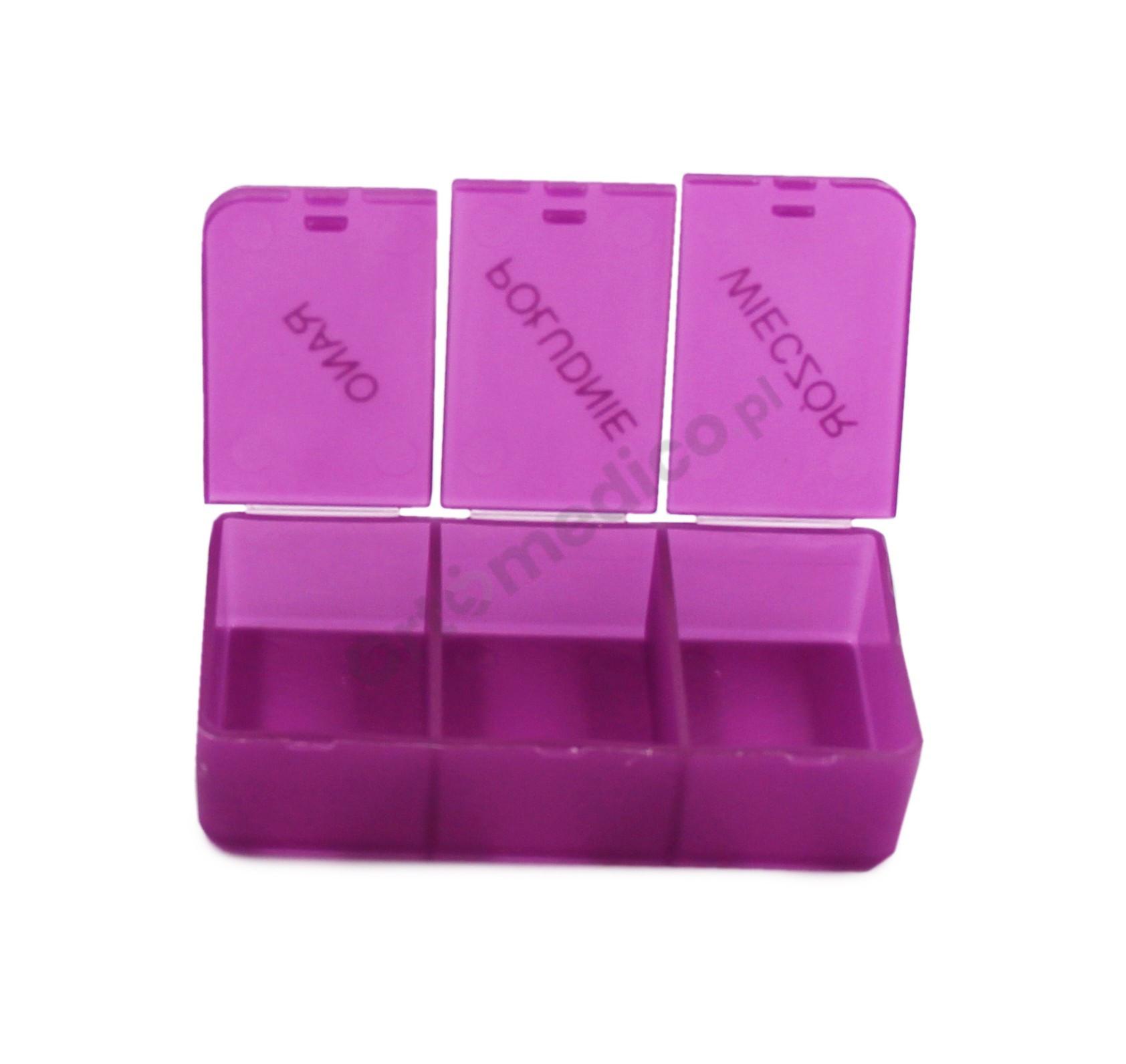 ▪️ Praktyczność: kasetka podzielona jest na 3 przegródki, oznaczonych porami dnia, co pozwala na dokładne zaplanowanie przyjmowania leków na cały dzień.