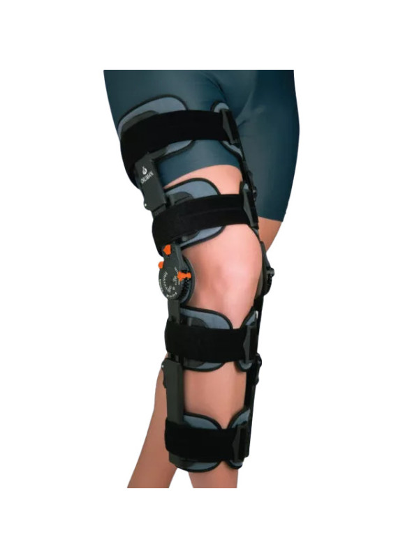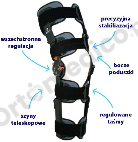 Wskazania: Niestabilności stawu kolanowego, pooperacyjnie, pourazowo, proces rehabilitacji, w celu pełnego unieruchomienia kończyny w stawie kolanowym w wyproście lub zgięciu, gdy wymagana jest dokładna kontrola zakresu ruchu w stawie kolanowym (np. po zabiegach na więzadłach krzyżowych).