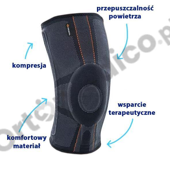Funkcjonalny Elastyczny stabilizator stawu kolanowego ze stalkami bocznymi TGO480 Orliman zalety produktu: