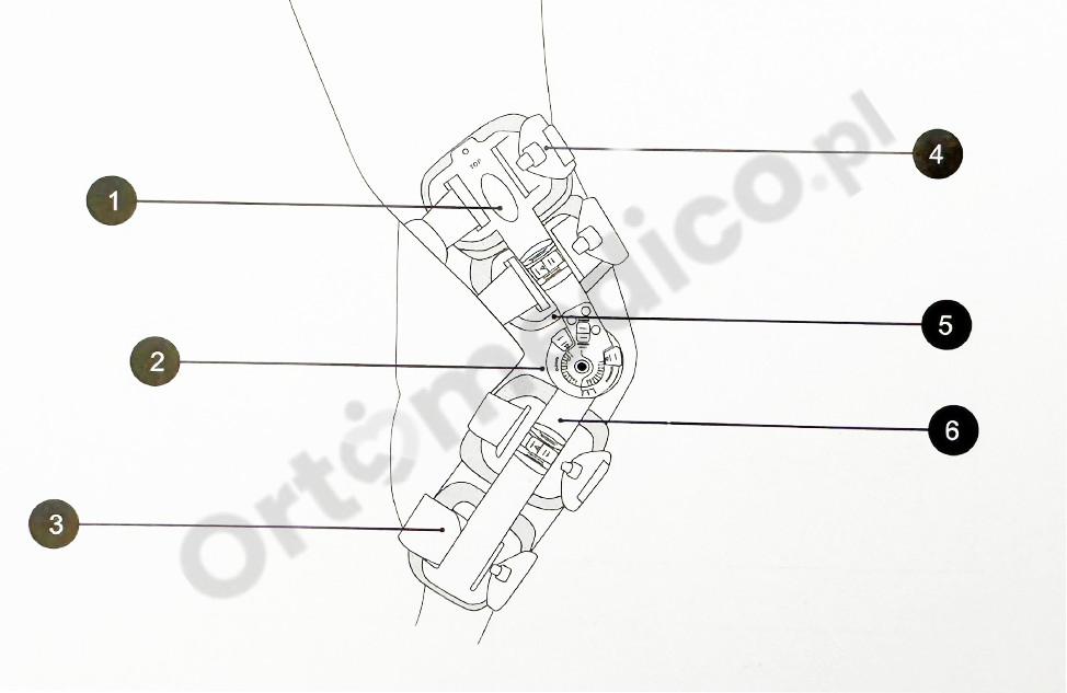 Dzięki regulowanym szynom teleskopowym, ortezę można dopasować do indywidualnej długości nogi. Wbudowany mechanizm zegarowy umożliwia precyzyjne ustawienie kąta zgięcia i wyprostu. Orteza została wykonana z wytrzymałych materiałów i wyposażona w system szybkiego zapinania, wykorzystujący wygodne klamry i taśmy.