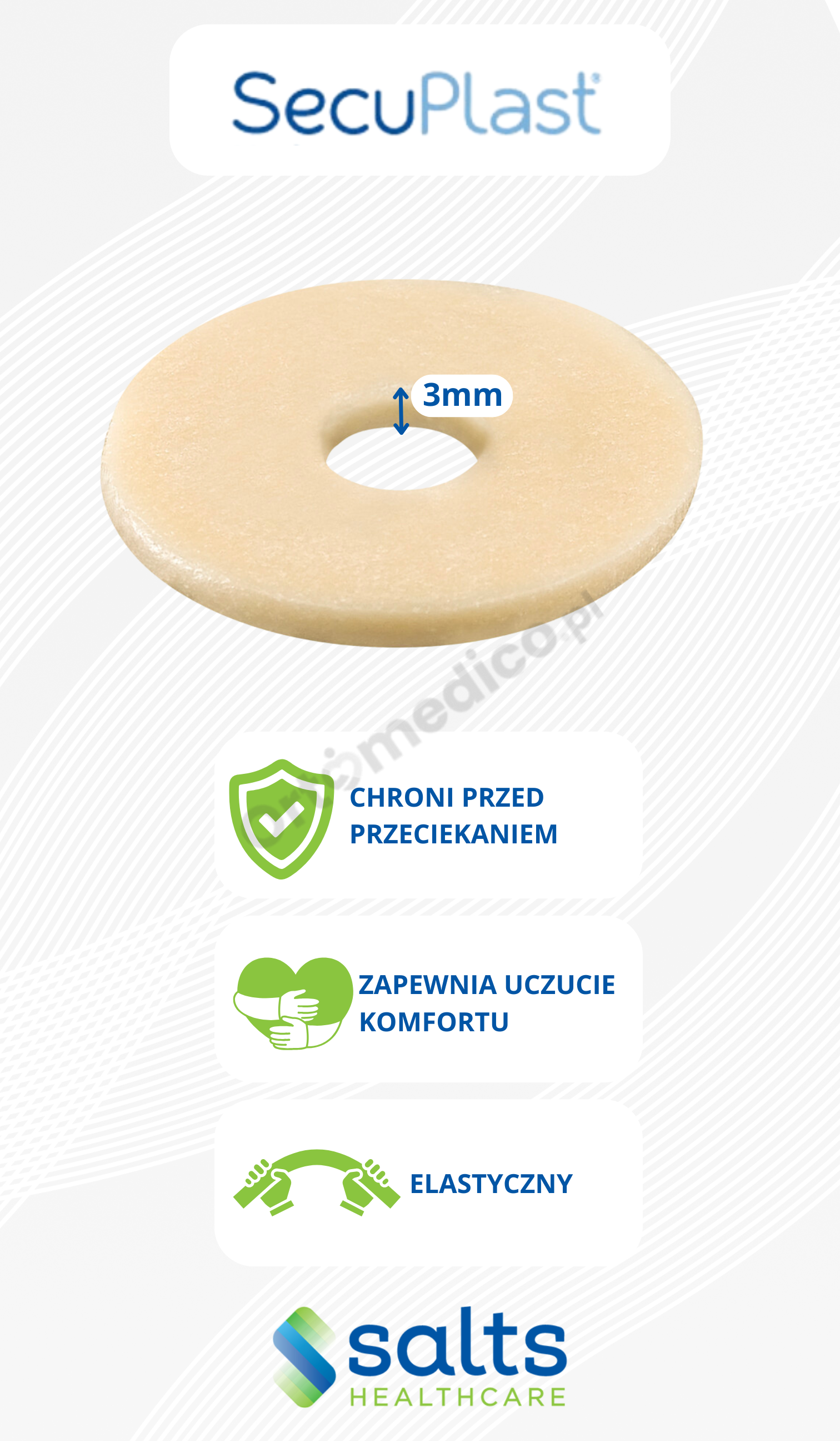 Jeśli zmagasz się z przeciekami, podrażnieniami skóry lub trudnością w dopasowaniu płytki stomijnej, postaw na sprawdzone rozwiązanie, jakim jest pierścień plastyczny Secuplast marki SALTS. To nowoczesny produkt stworzony z myślą o osobach, które chcą żyć aktywnie i bez ograniczeń, niezależnie od rodzaju i kształtu stomii.
