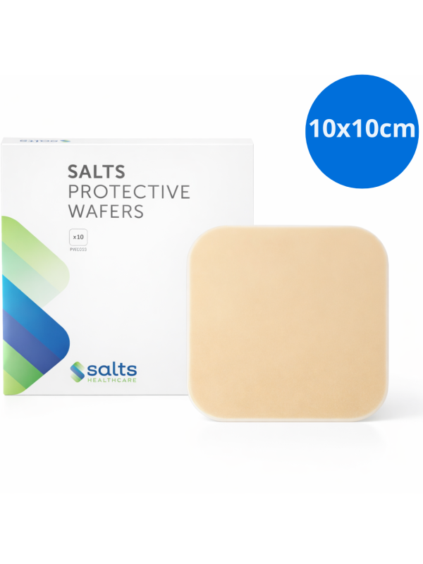 Protective Wafers Salts to płytki hydrokoloidowe o gojąco-ochronnym działaniu, które zostały specjalnie zaprojektowane, aby przynieść korzyści osobom ze stomią, cierpiącym z powodu dużych podrażnień wokół stomii, problemów z przyczepianiem się sprzętu stomijnego oraz bardzo wrażliwej skóry.