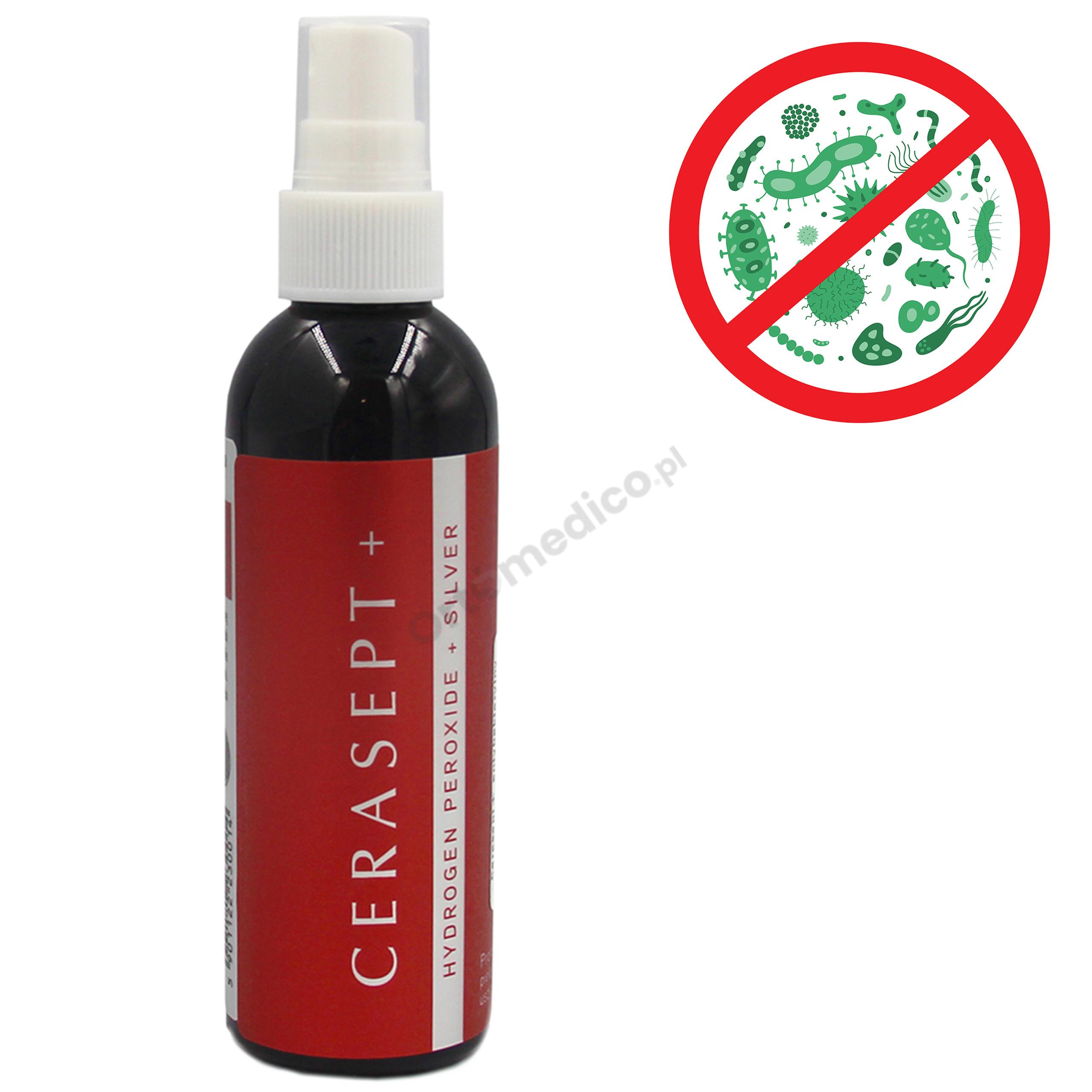 Cerasept + jest złożony z dwóch substancji (aktywnego tlenu i srebra), które połączone ze sobą dają znacznie skuteczniejszy efekt, niż stosowane osobno.