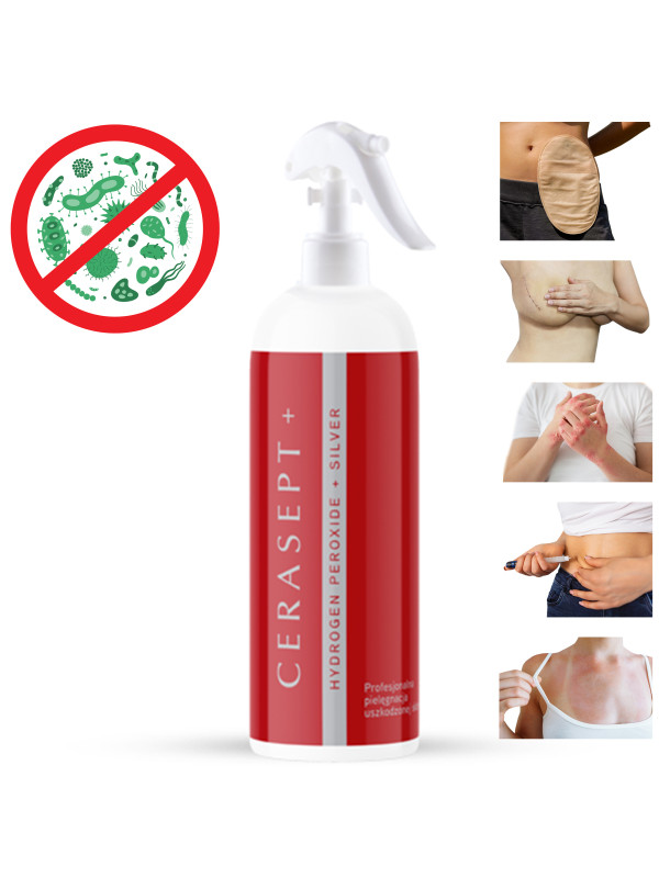 Cerasept+ płyn na uszkodzoną skóry wokół stomii, na odleżyny 500ml Ropiejąca Rana