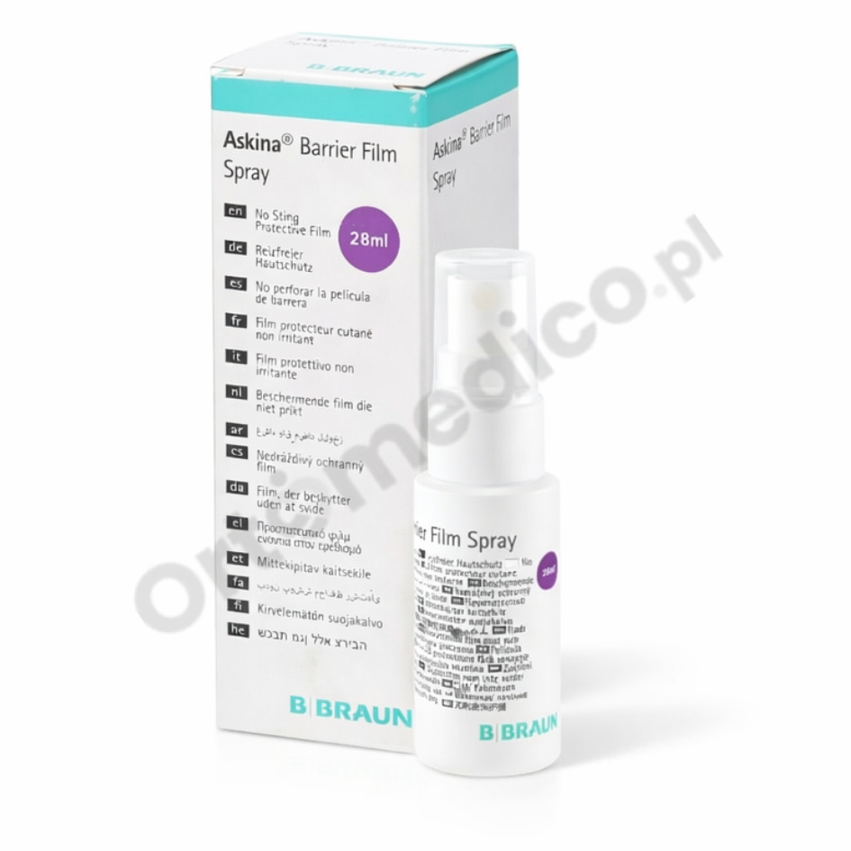Askina® Barier Film Spray to profesjonalny preparat ochronny przeznaczony do codziennej pielęgnacji skóry szczególnie narażonej na podrażnienia, uszkodzenia mechaniczne oraz działanie wilgoci i drażniących wydzielin. Tworzy cienką, niewidoczną warstwę ochronną, która skutecznie zabezpiecza skórę, nie ograniczając jej naturalnych funkcji.