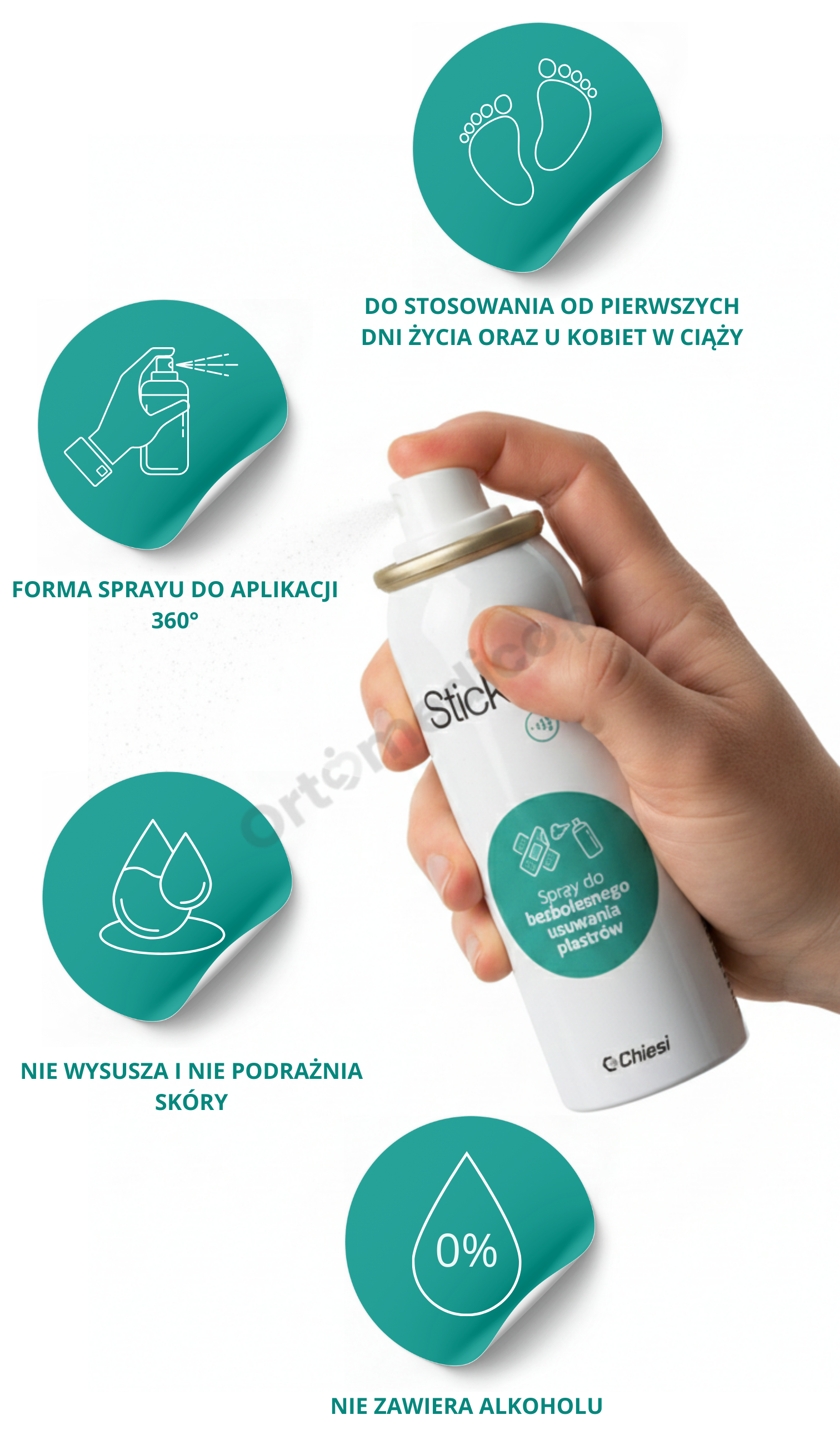 Spray StickOff® jest przeznaczony do bezbolesnego i bezpiecznego usuwania przylepców medycznych oraz pozostałości kleju ze skóry. Produkt polecany jest w szczególności dla