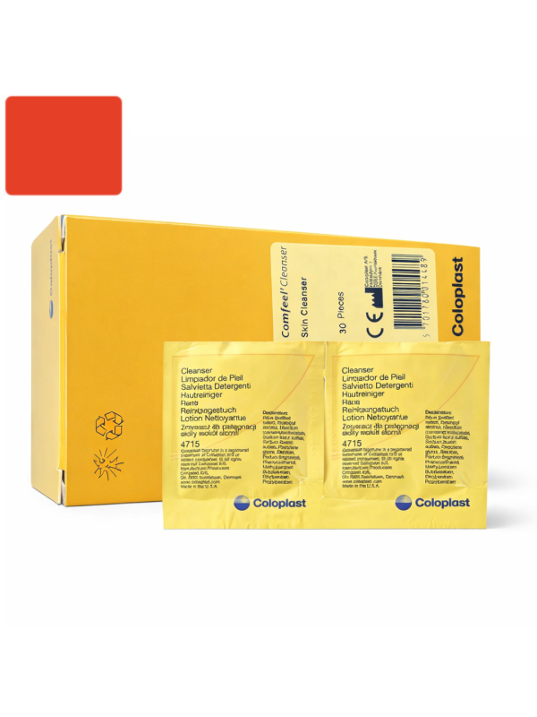 Coloplast Comfeel Cleanser Wipe to profesjonalny produkt do codziennej pielęgnacji skóry wokół stomii. Opracowana z myślą o osobach stomijnych, chusteczka zapewnia skuteczne oczyszczanie, jednocześnie chroniąc delikatną i wrażliwą skórę przed podrażnieniami oraz przesuszeniem.