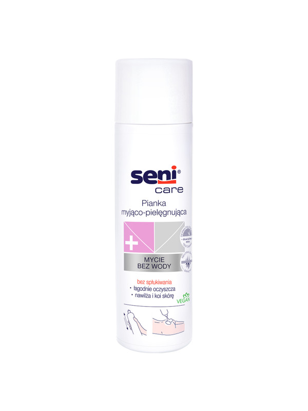 Seni Care to pianka myjąco-pielęgnująca, stworzona z myślą o podrażnionej skórze skórze. Idealna do użycia przez osoby starsze, leżące lub z nietrzymaniem moczu. Produkt skutecznie oczyszczająca, można go zastosować bezpośrednio na skórę, zapewnia ochronę i ukojenie. Dzięki swojej formule neutralizuje zapachy, a jej pH przyjazne dla skóry stabilizuje naturalny kwaśny płaszcz ochronny.