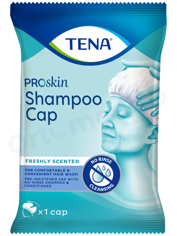 TENA ProSkin Shampoo Cap nie tylko myje włosy, ale także pielęgnuje je dzięki zawartości odżywki. Miękkie, elastyczne i wygodne w dotyku, świeży zapach zapewnia czystość i przyjemny zapach.