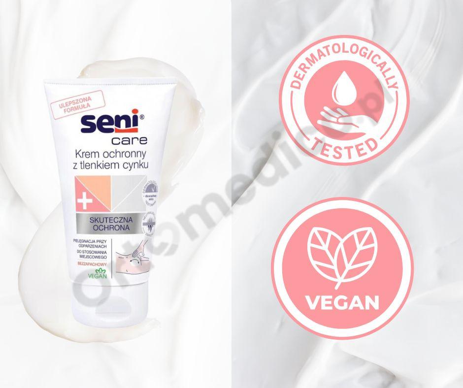 Regularne stosowanie kremu pomaga zapobiegać odleżynom i odparzeniom, a jego delikatna konsystencja ułatwia równomierną aplikację oraz szybkie wchłanianie. Dzięki temu skóra pozostaje miękka, gładka i odpowiednio zabezpieczona. Krem z tlenkiem cynku Seni Care stanowi więc nieodzowny element pielęgnacji i ochrony skóry, szczególnie u osób obłożnie chorych lub korzystających z pieluch, zapewniając optymalny komfort i zdrowy wygląd na co dzień.