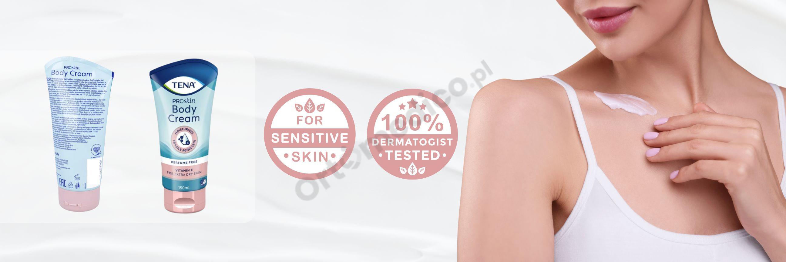 Krem Tena ProSkin Body Cream z witaminą E nie zawiera substancji zapachowych oraz jest przetestowany dermatologicznie, co zapewnia bezpieczeństwo nawet dla bardzo delikatnej i wymagającej skóry.