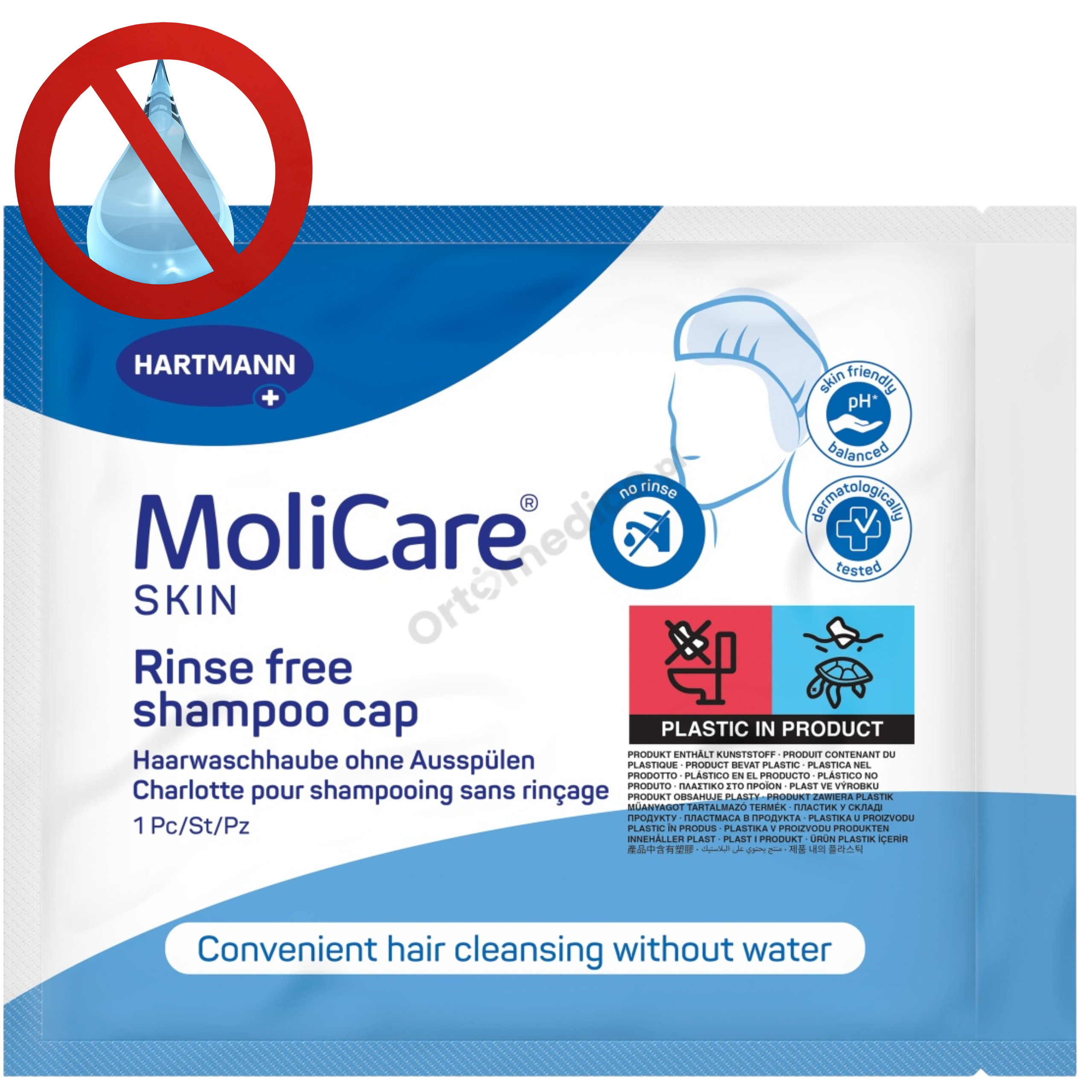 Molicare Skin Czepek do Mycia Włosów bez Wody z Szamponem i Odżywką dla Osób Leżących, Chorych i Seniorów