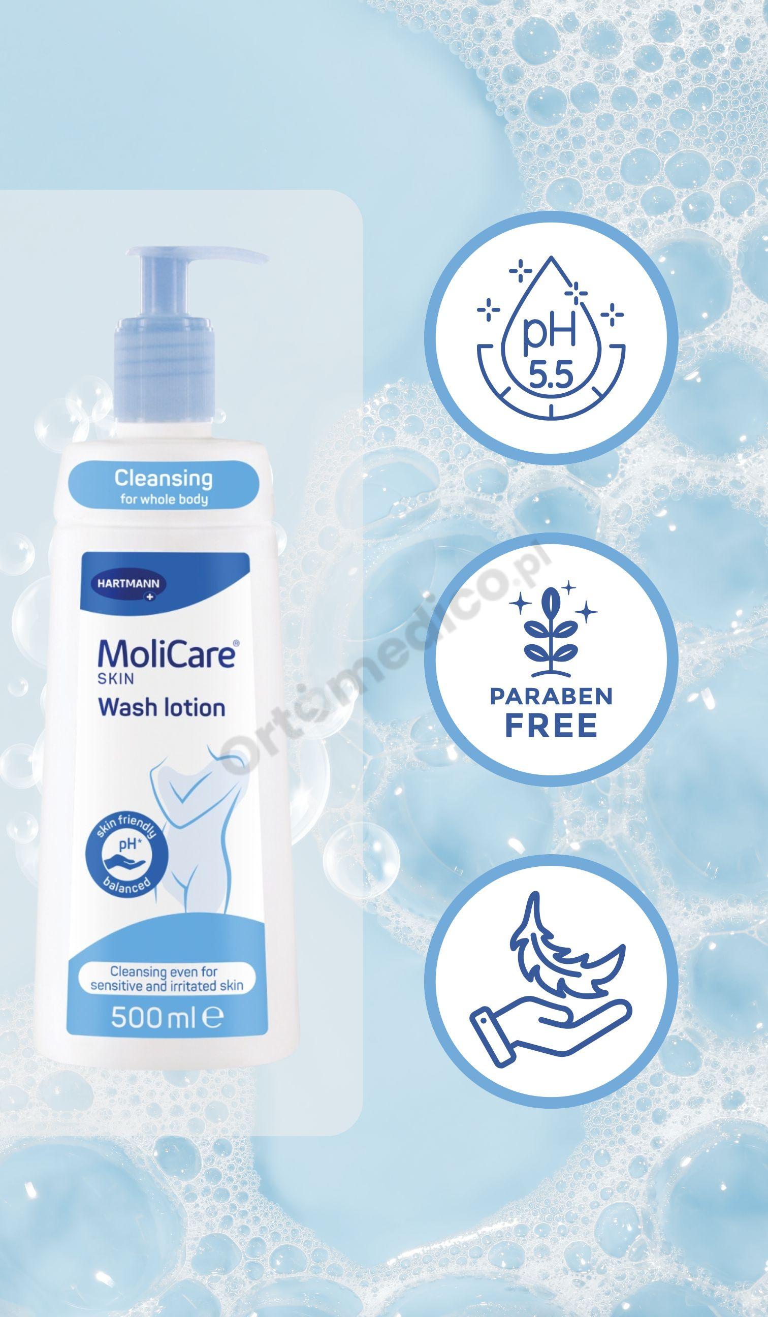 MoliCare Skin to nowoczesne mydło w płynie, które nie tylko skutecznie oczyszcza skórę, ale również intensywnie ją pielęgnuje i chroni przed podrażnieniami. Produkt został stworzony z myślą o osobach o skórze wrażliwej, wymagającej szczególnej troski, w tym tych zmagających się z nietrzymaniem moczu i kału. Łączy w sobie delikatne działanie oczyszczające z odżywieniem i regeneracją, dzięki czemu skóra pozostaje miękka, elastyczna i zdrowo wyglądająca.