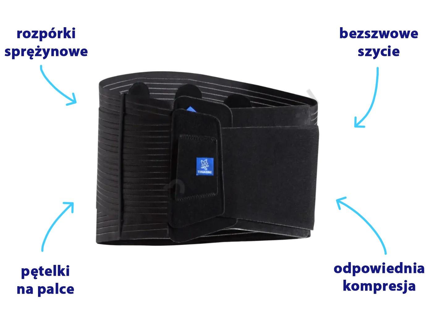 - Przy przewlekłych dolegliwościach bólowych lub zwyrodnieniach odcinka lędźwiowego, gdzie pas odciąża krążki międzykręgowe i stabilizuje kręgosłup
