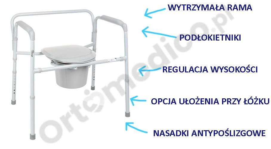 - Umożliwia bezpieczne korzystanie z toalety w domu, szpitalu lub ośrodku rehabilitacyjnym.