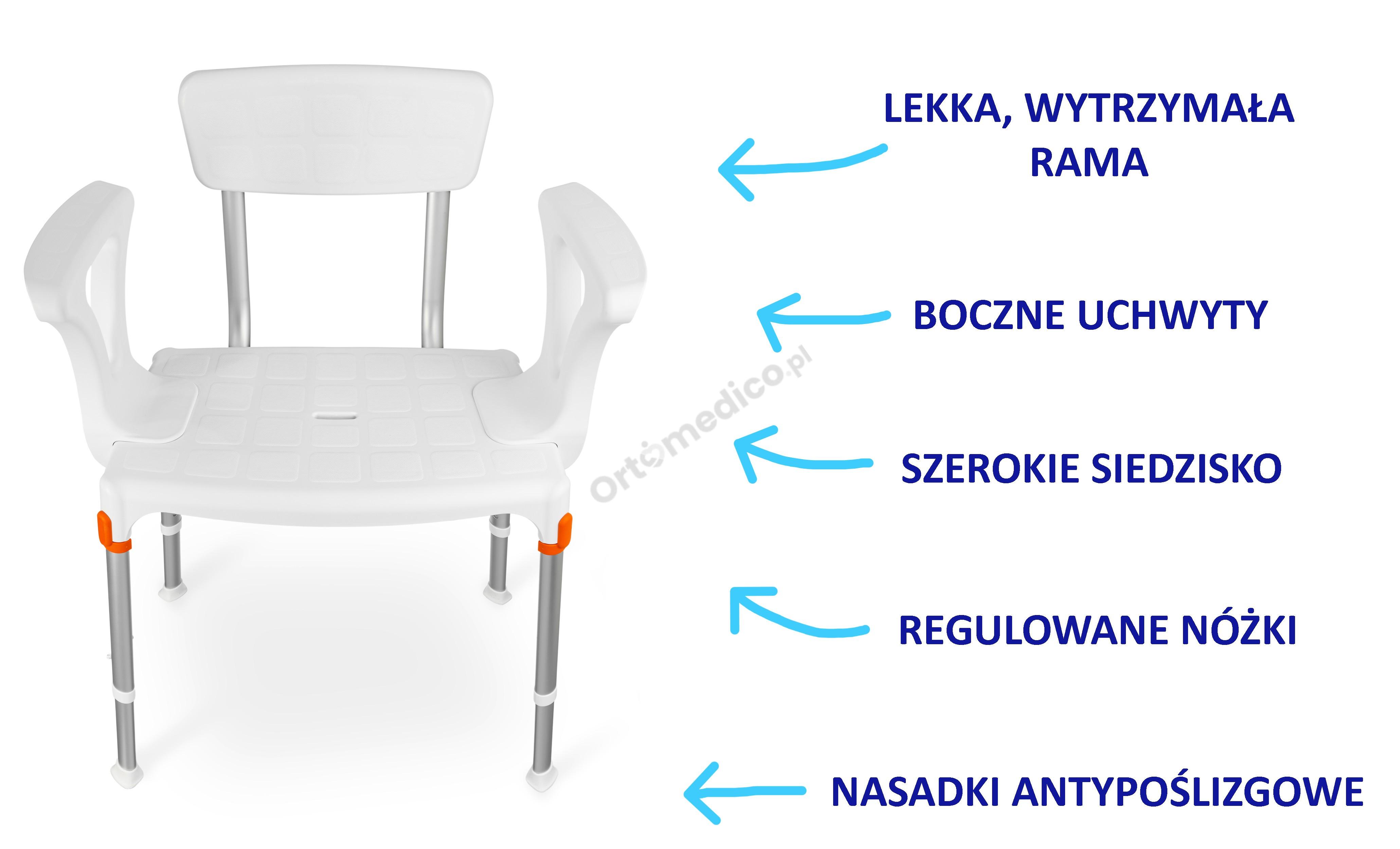Taboret prysznicowy z oparciem i uchwytami bocznymi 3w1 KING-SS1BA-20 Timago zalety produktu:
