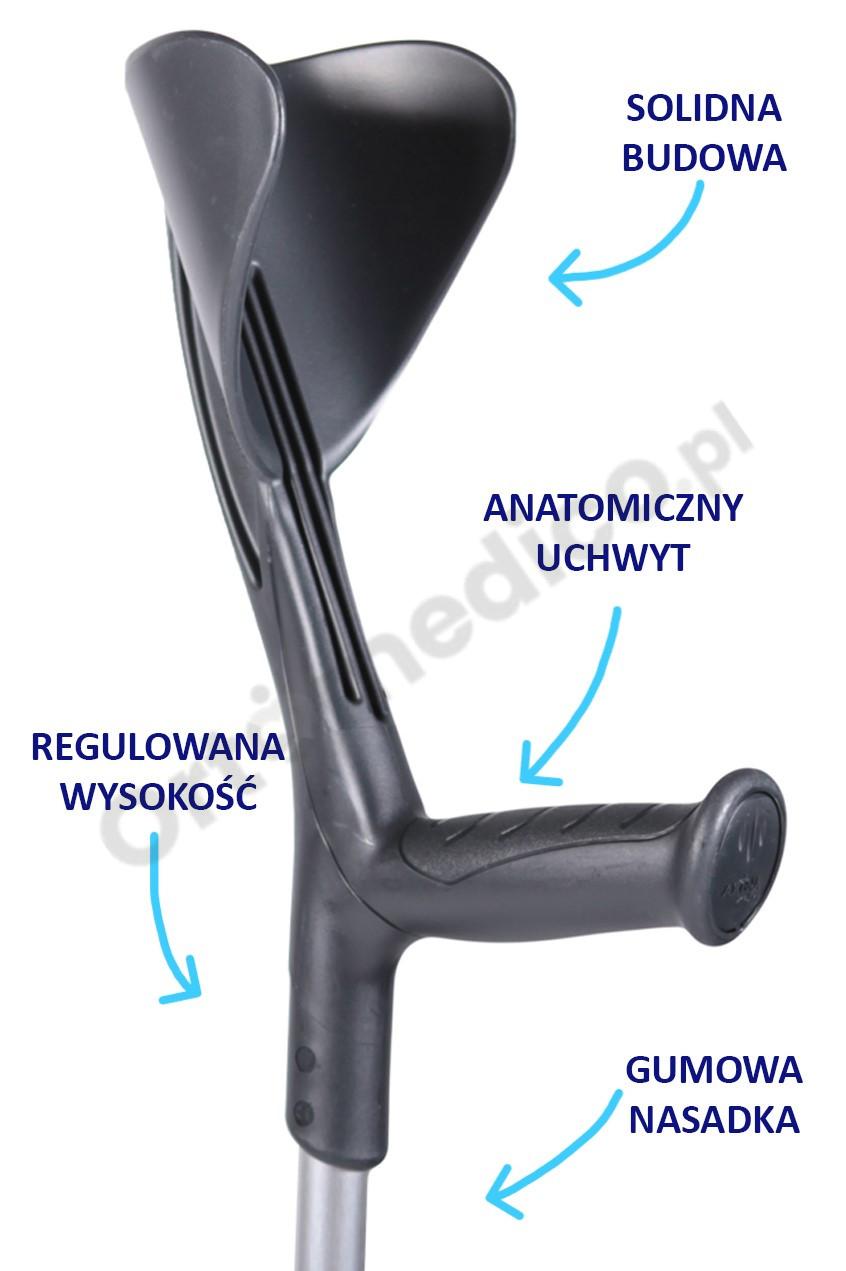 Wskazania: Wsparcie w rehabilitacji po urazach kończyn dolnych, takich jak złamania, zwichnięcia, skręcenia i kontuzje. Utrzymanie równowagi i przenoszenie ciężaru ciała w przypadku schorzeń ortopedycznych. Wspomaganie poruszania się u osób z obniżoną stabilnością lub osłabionymi mięśniami nóg. Pomoc w chodzeniu u osób starszych lub o ograniczonej sprawności ruchowej.
