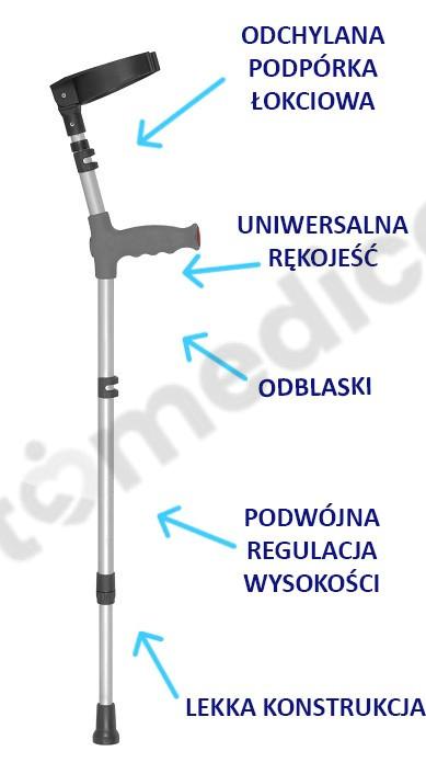 Kula łokciowa 01/MR „M” z odchylaną podpórką i miękkim uchwytem Mikirad zalety produktu: