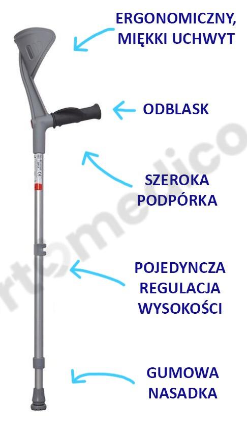 Kula łokciowa 04/MR.E z pojedynczą regulacją wysokości i stałą podpórką Mikirad zalety produktu: