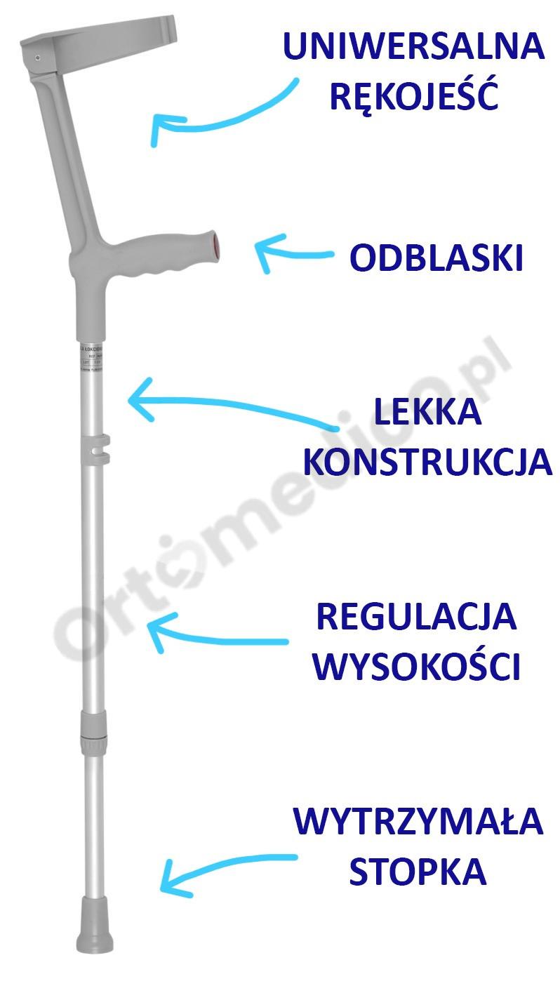 Kula łokciowa z regulacją wysokości i odchylaną podpórką 05/MR Mikirad zalety produktu: