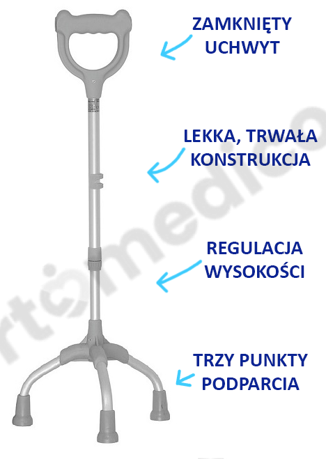 Trójnóg 15/MR.L firmy Mikirad to wszechstronne wsparcie dla osób z ograniczeniami ruchowymi, zapewniające stabilność i wygodę użytkowania. Wyposażony w zamknięty uchwyt, trójnóg oferuje pewny chwyt oraz optymalne wsparcie, dzięki trzem punktom podparcia zakończonym wytrzymałymi nasadkami. Regulacja wysokości umożliwia dostosowanie do wzrostu użytkownika, co sprawia, że produkt idealnie nadaje się do codziennego użytkowania przez osoby z niepełnosprawnością kończyn dolnych lub trudnościami z zachowaniem równowagi.