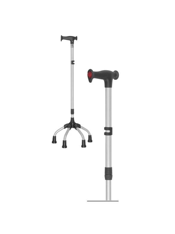 Czwórnóg z uchwytem laski uniwersalnej 16/MR.LU Mikirad to solidne rozwiązanie dla osób o obniżonej sprawności ruchowej. Dzięki czteropunktowemu podparciu zapewnia wyjątkową stabilność i komfort podczas poruszania się. Przeznaczony głównie dla osób z trudnościami w utrzymaniu równowagi, model ten oferuje możliwość regulacji wysokości, co umożliwia dostosowanie go do indywidualnych potrzeb użytkownika. Uchwytem mogą posługiwać się zarówno osoby praworęczne, jak i leworęczne.