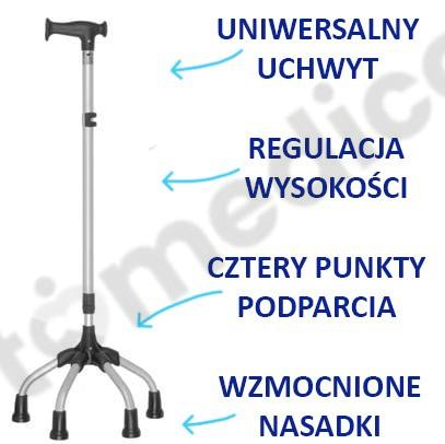 Czwórnóg z uchwytem laski uniwersalnej 16/MR.LU Mikirad zalety produktu: