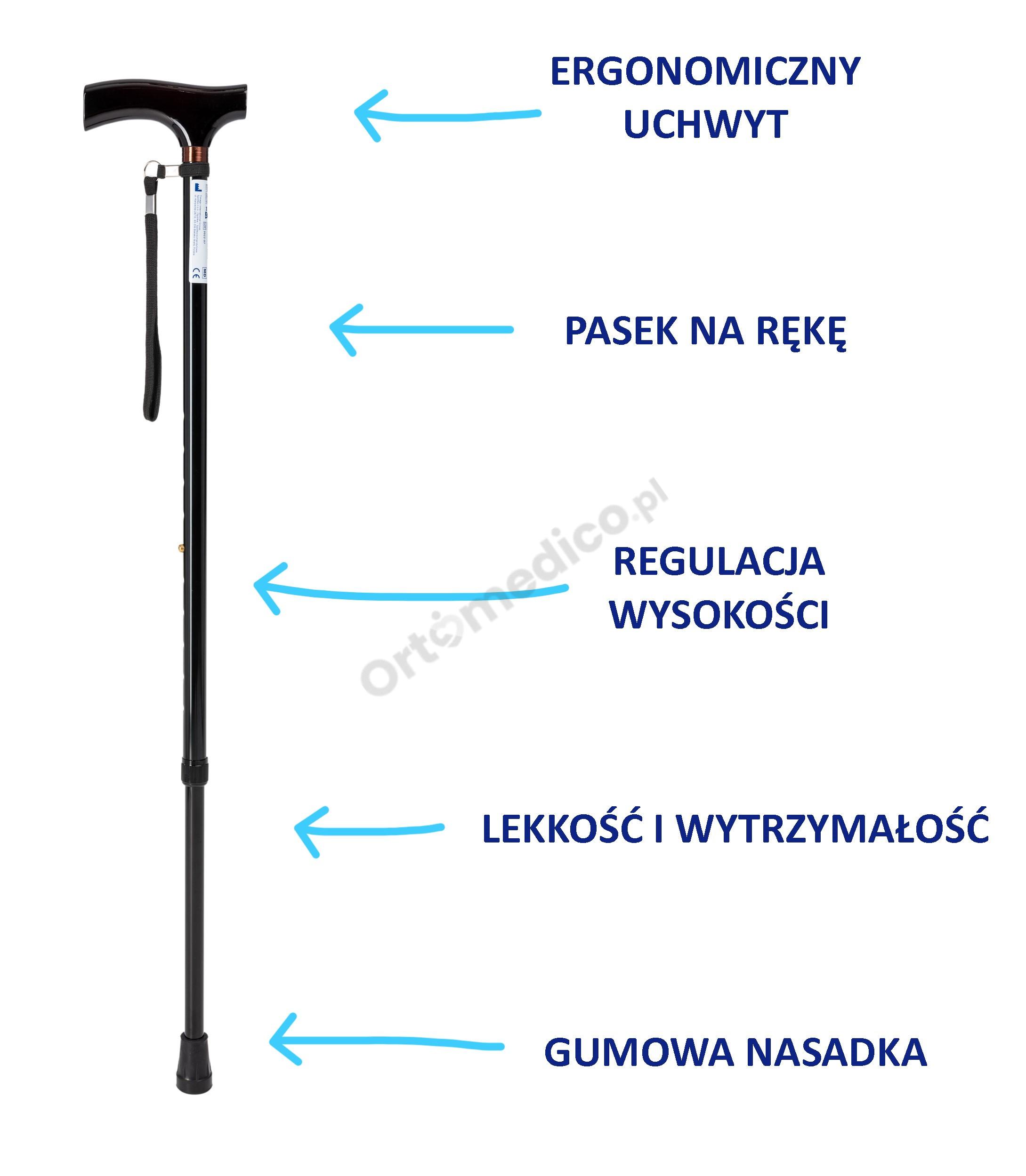 Laska inwalidzka aluminiowa, regulowana Timago zalety produktu: