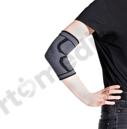 - Elastyczny materiał - dopasowuje się do kształtów łokcia, dzięki elastyczności i rozciągliwości.