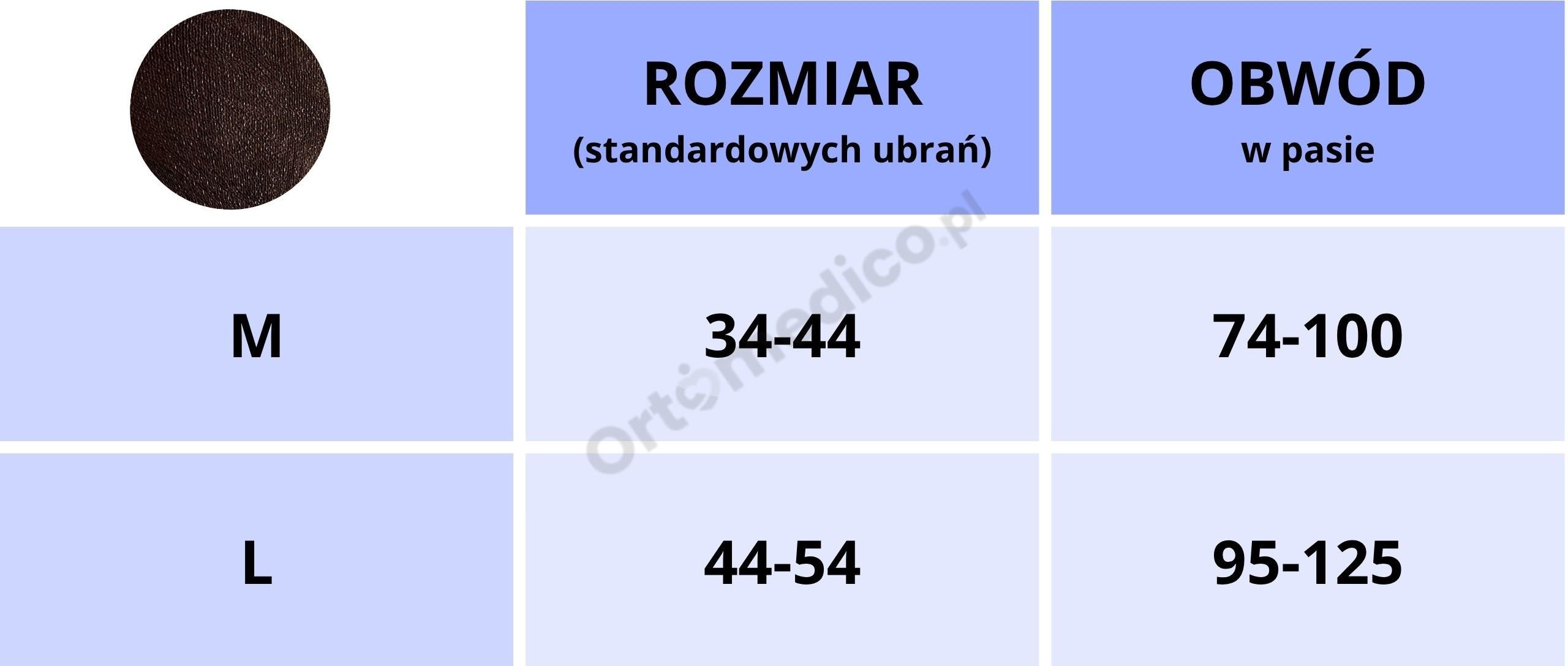 L: pasuje na obwód talii 95–125 cm