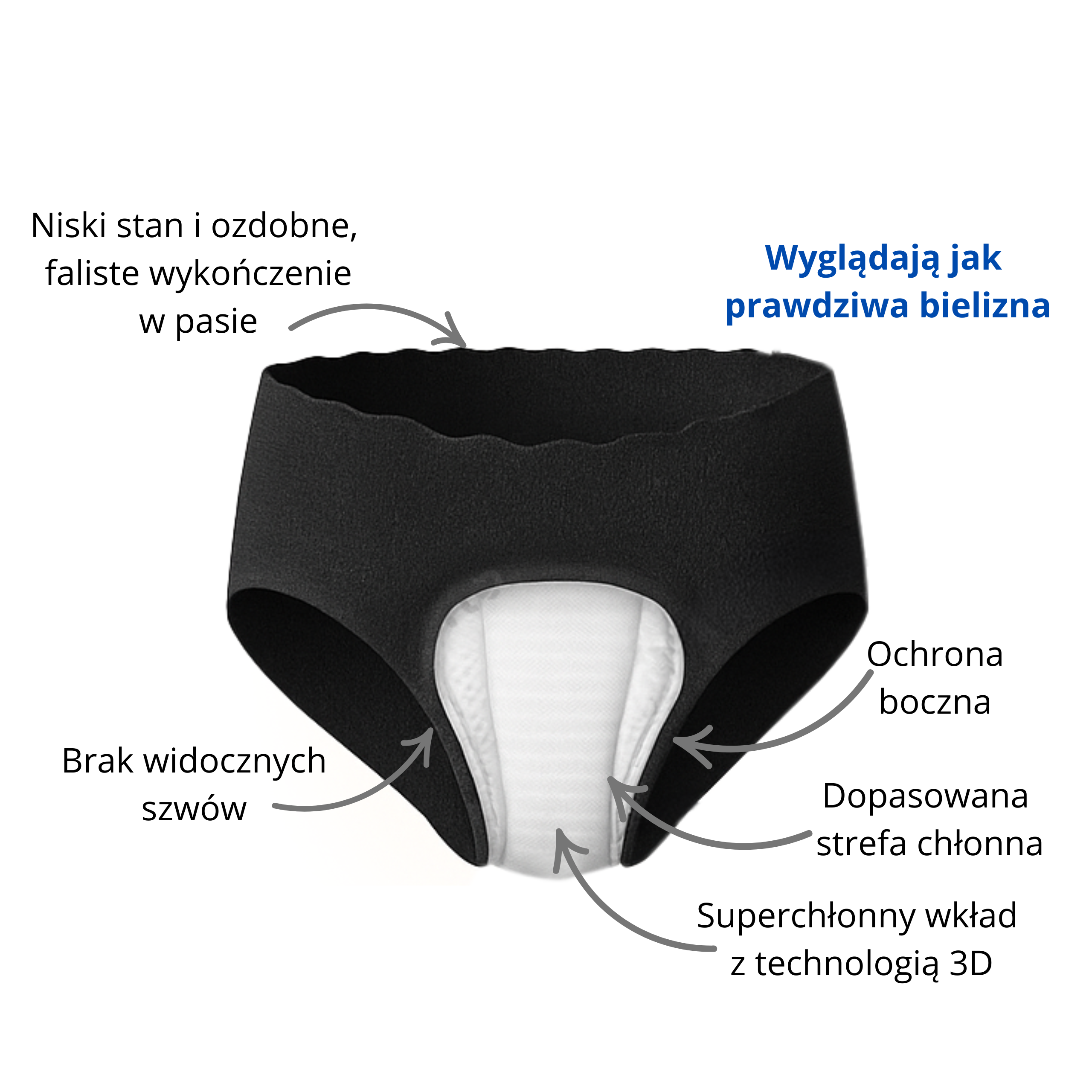 • Załóż bieliznę chłonną jak zwykłe majtki – nie wymaga dodatkowego wkładania.
