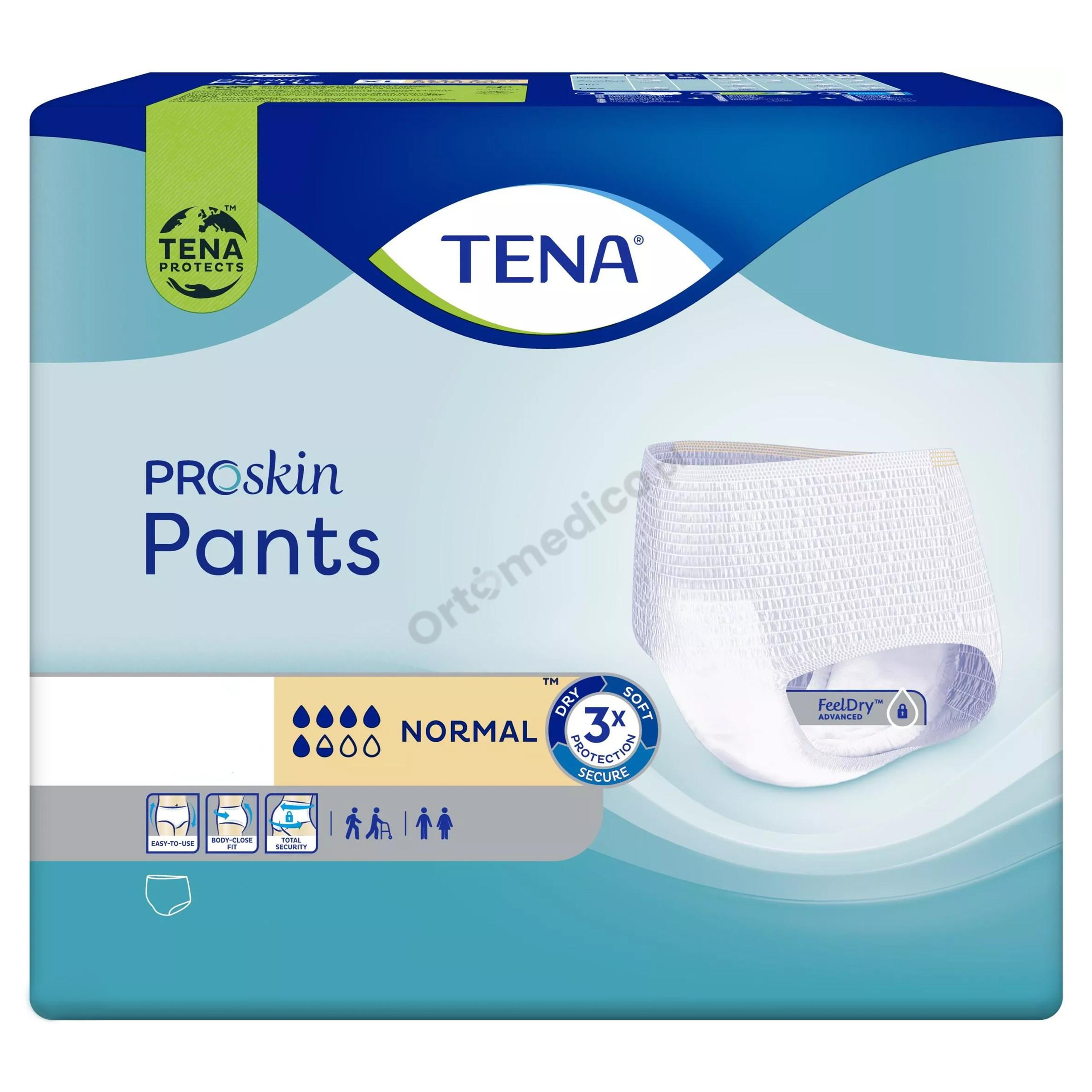 Majtki chłonne TENA Pants ProSkin Normal to niezawodne rozwiązanie dla kobiet i mężczyzn z średnim lub ciężkim stopniem nietrzymania moczu. Dzięki innowacyjnej technologii FeelDry Advanced™ zapewniają 2x szybsze wchłanianie oraz do 100% ochrony przed przeciekaniem – zarówno w dzień, jak i w nocy. Jednorazowe majtki na nietrzymanie moczu zakłada się jak zwykłą bieliznę, co sprawia, że są wygodne, dyskretne i wspierają prowadzenie aktywnego stylu życia.