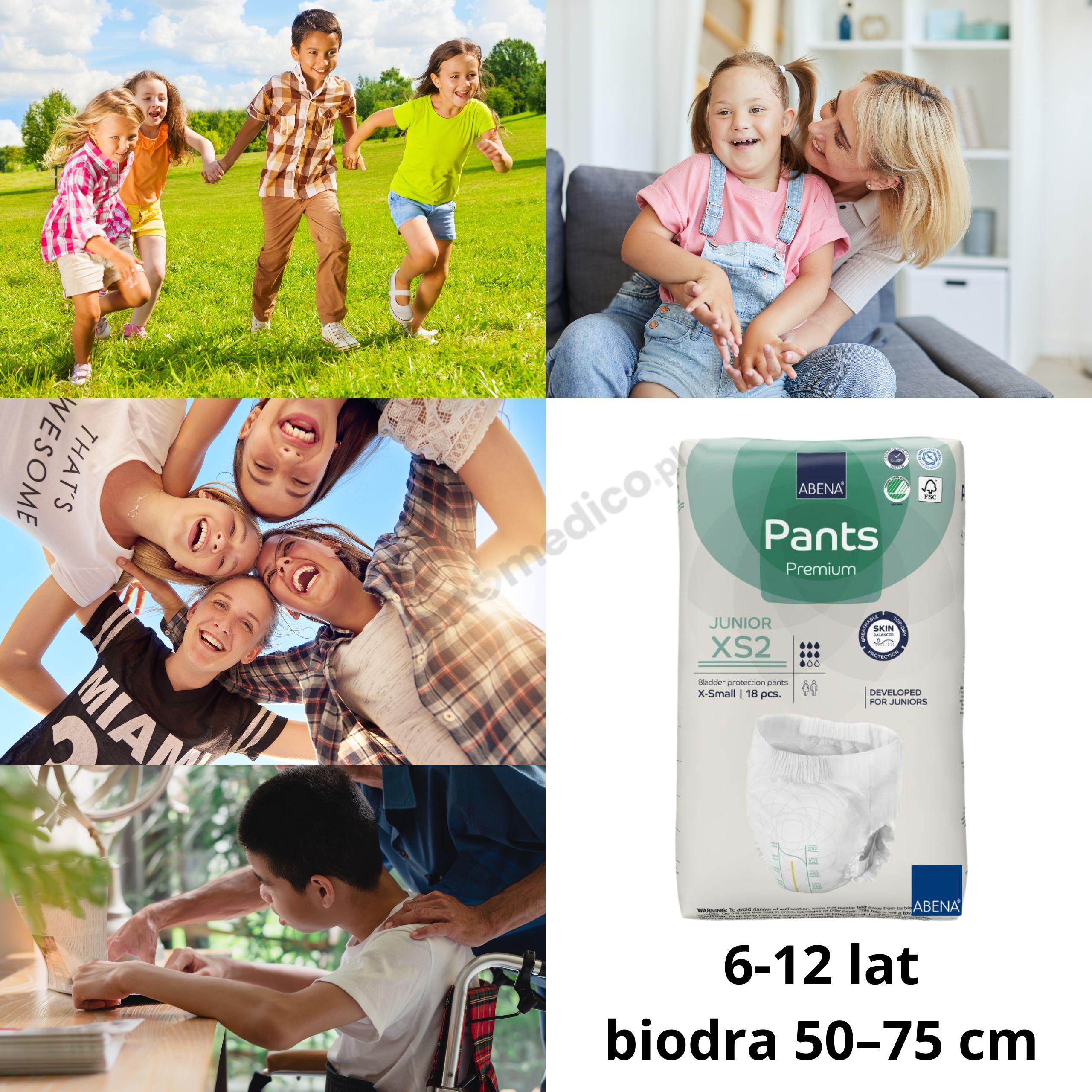 Abena Pants Premium Junior XS2 to chłonne majtki wciągane stworzone specjalnie dla starszych dzieci i młodzieży zmagających się z nietrzymaniem moczu lub stolca.