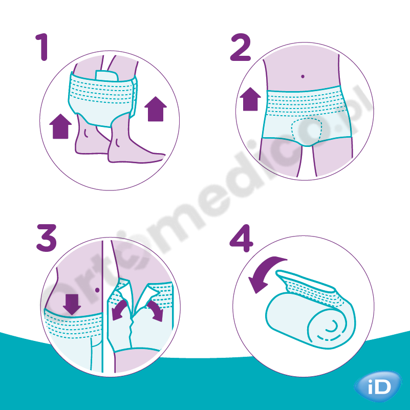 • Łatwe zakładanie i zdejmowanie: Majtki można szybko zdjąć dzięki rozciągliwemu pasowi lub bocznemu rozdarciu.