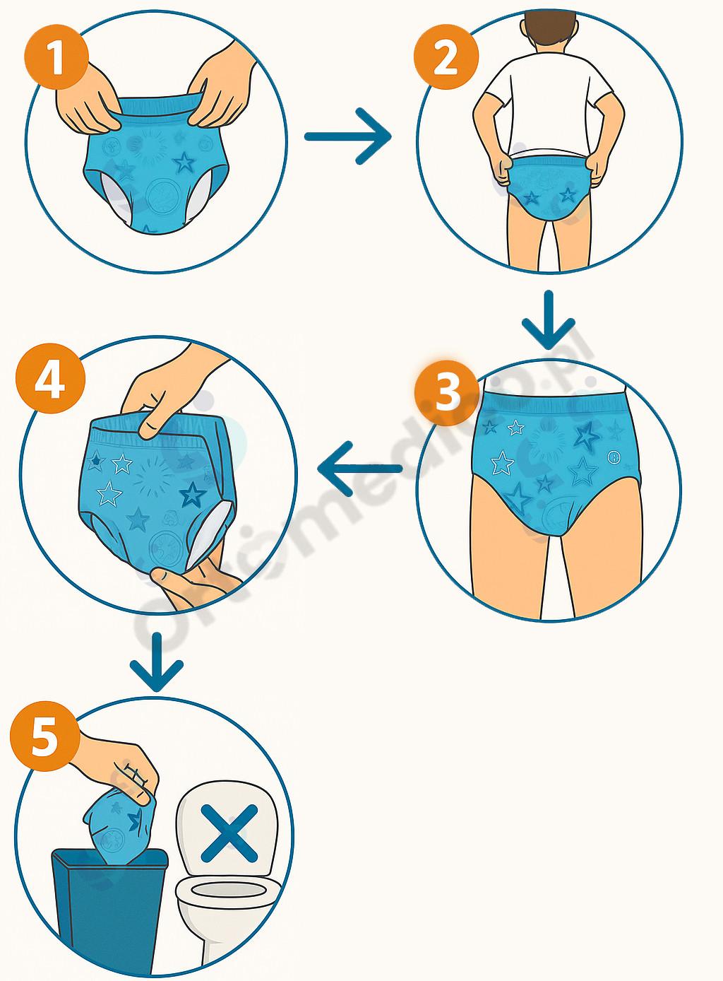 a) W przypadku wciąganych majtek chłonnych polecamy: