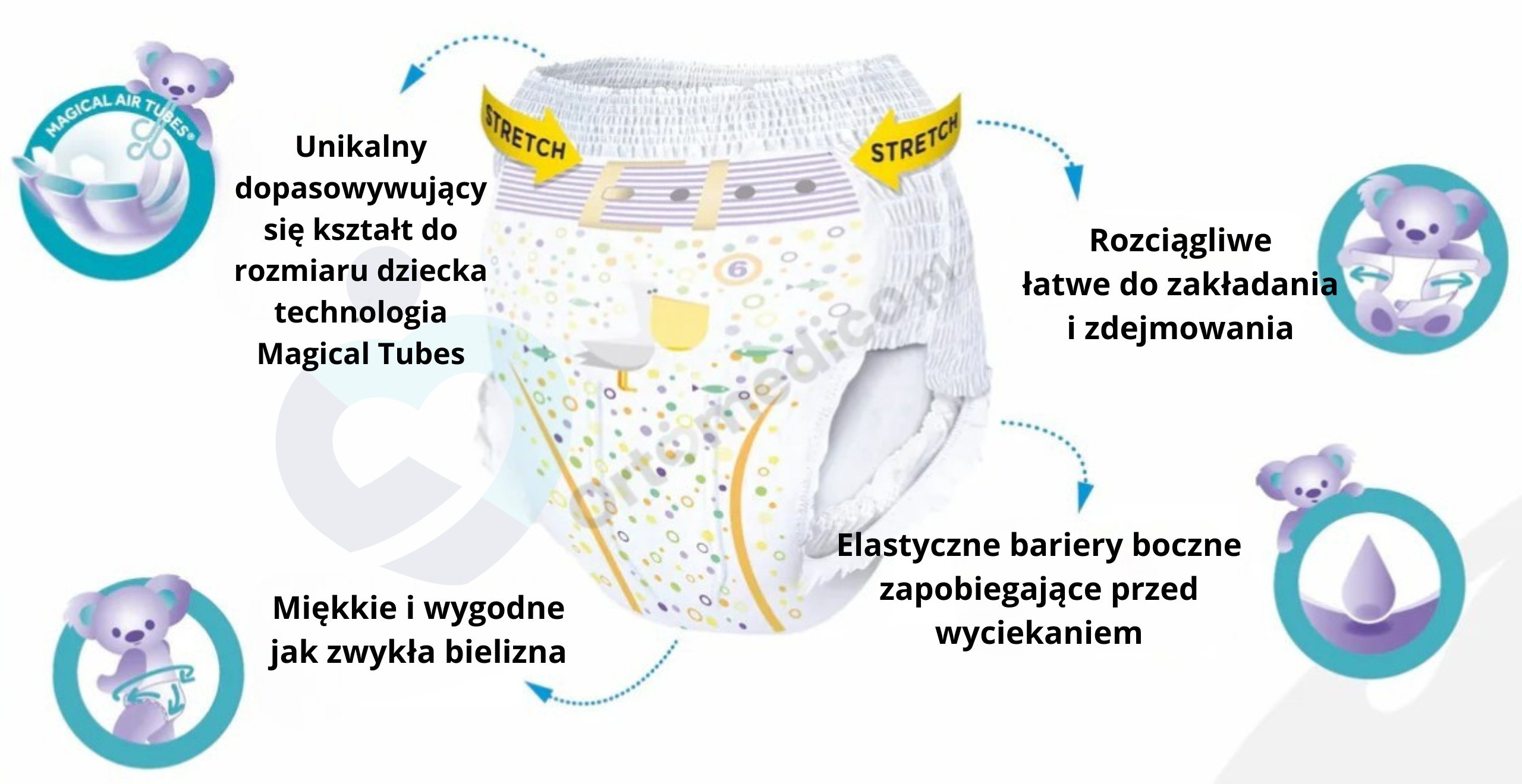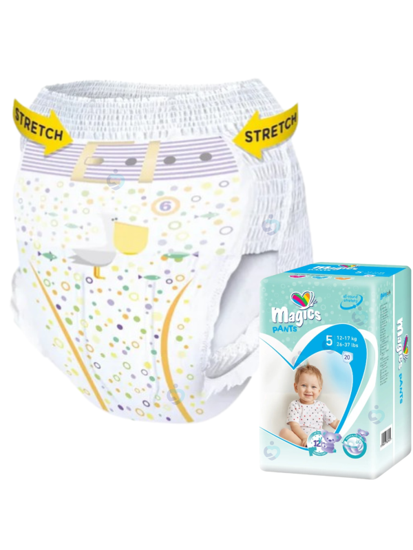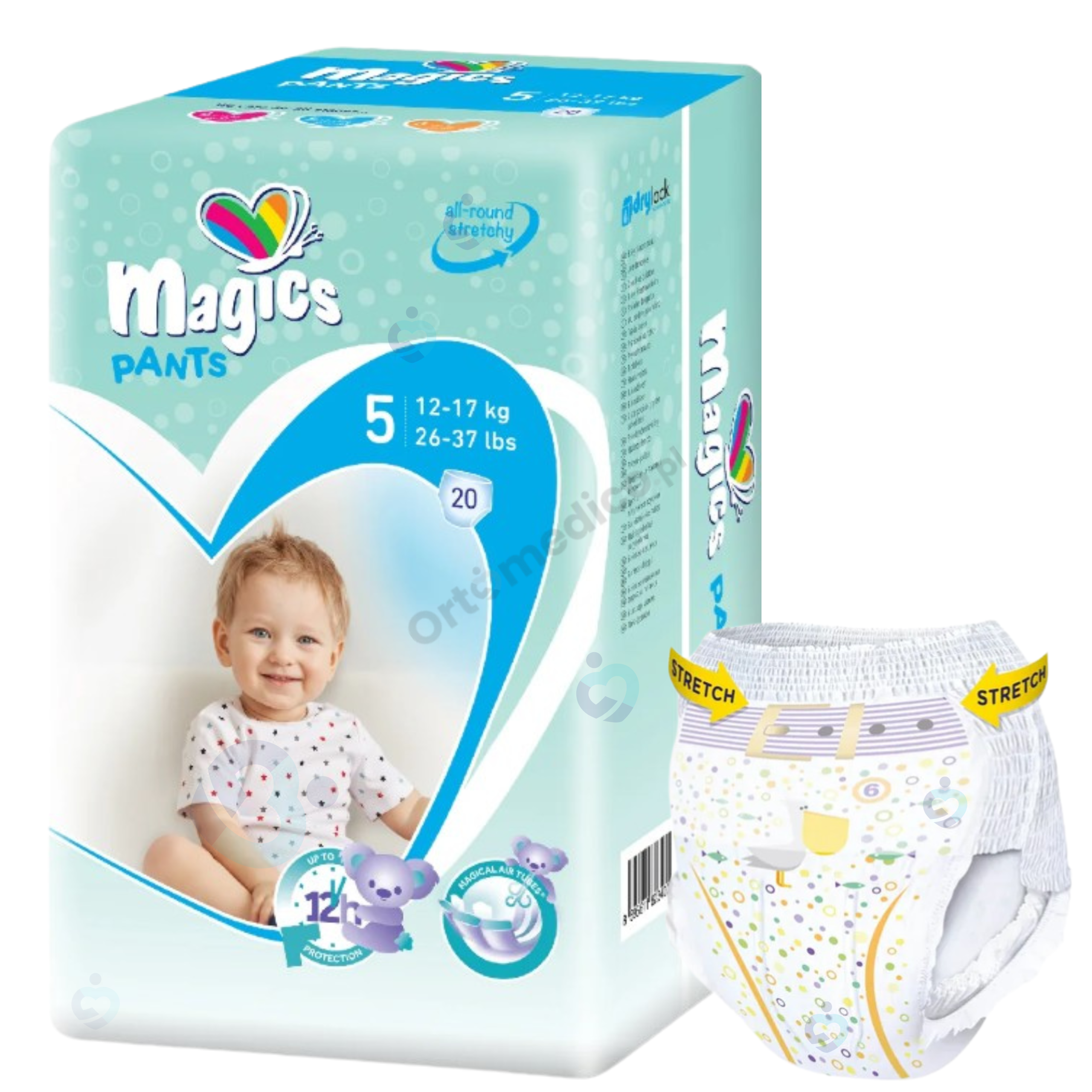 Magics Pants 5 (12–17 kg) – majtki chłonne dla dzieci, idealne na noc i dzień, do nauki nocnika