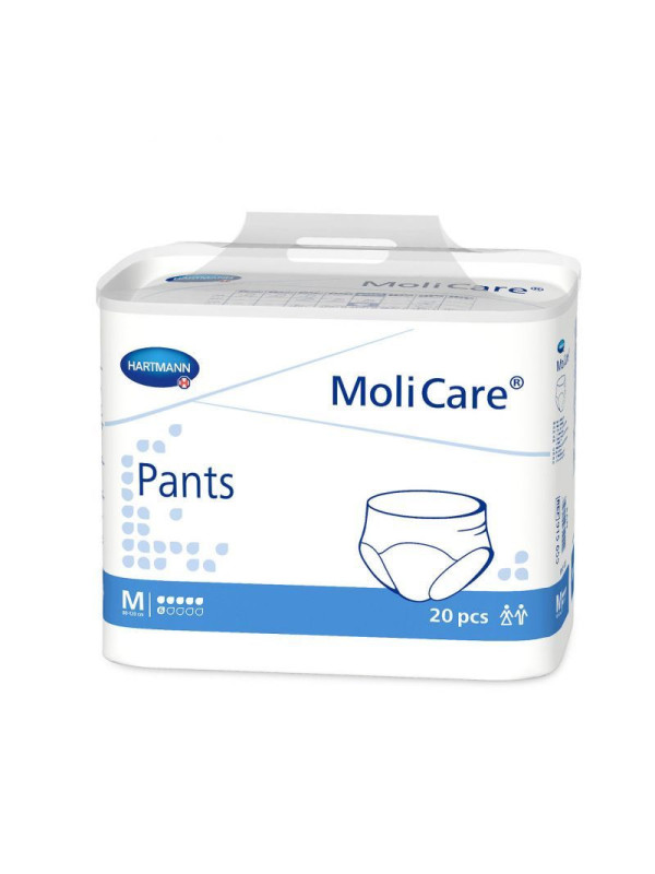 MoliCare® Pants 6K to majtki chłonne dedykowane osobom zmagającym się ze średnim i ciężkim nietrzymaniem moczu. Produkt został zaprojektowany specjalnie dla kobiet i mężczyzn prowadzących aktywny tryb życia, którzy poszukują komfortowego i skutecznego rozwiązania na co dzień. Dzięki konstrukcji przypominającej tradycyjną bieliznę, MoliCare® Pants 6K zapewniają dyskrecję, wygodę i ochronę przed przeciekaniem w ciągu dnia.