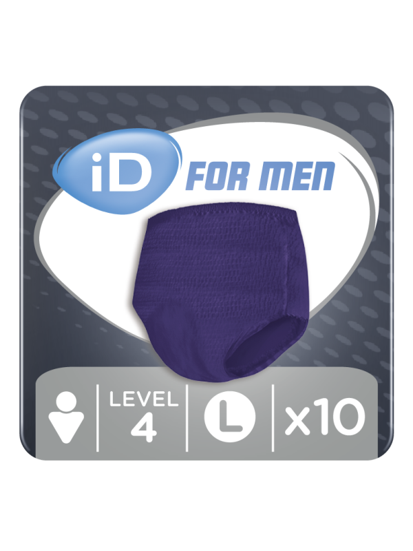 Majtki chłonne iD for Men Pants przeznaczone są dla aktywnych mężczyzn, którzy potrzebują pewnej ochrony przed nietrzymaniem moczu. iD for Men oferuje mężczyznom w każdym wieku skuteczną kontrolę nad średnim nietrzymaniem moczu. Chłonność jaką posiadają te majtki to 6/8 kropelek.
