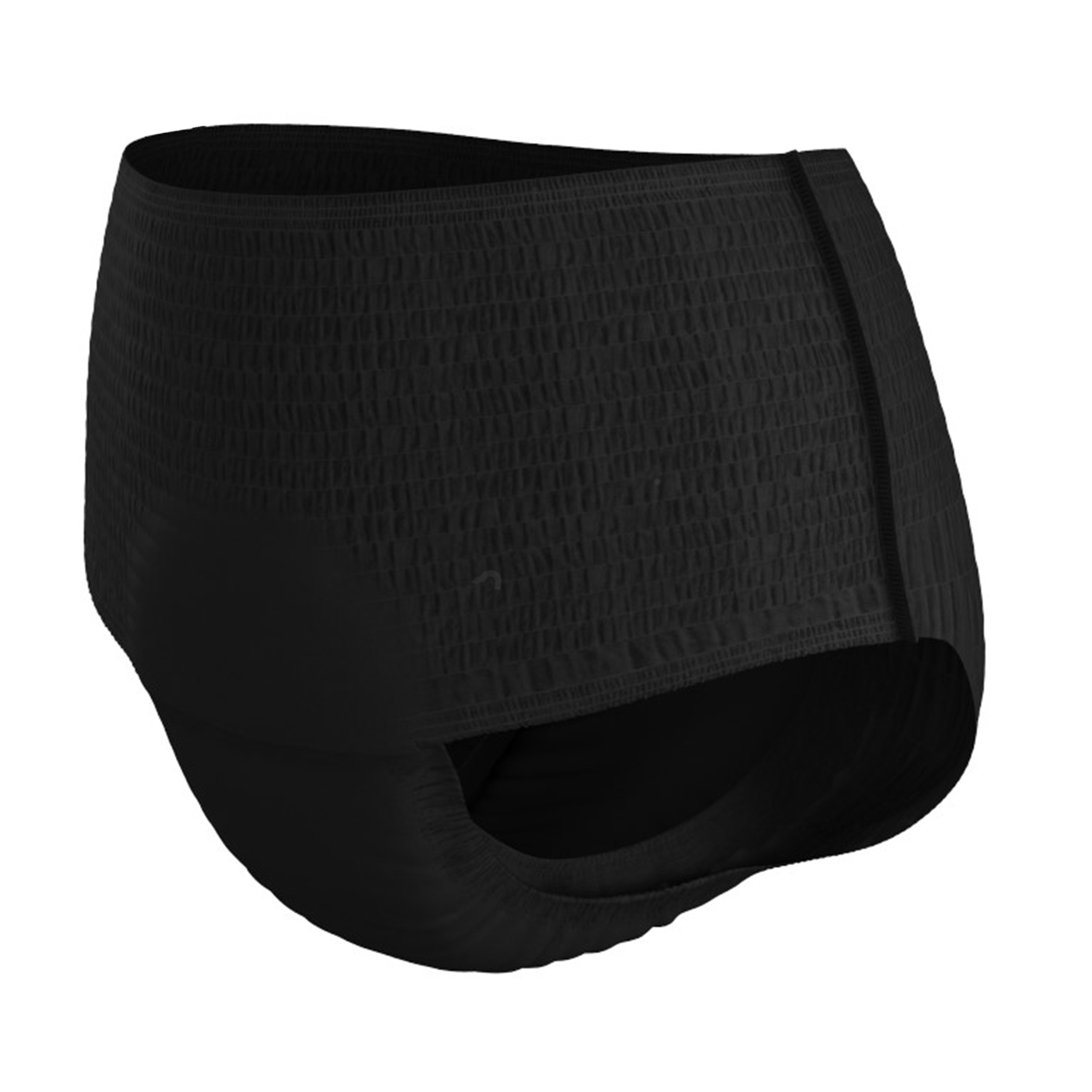 Elegancka bielizna chłonna w efektownym czarnym kolorze wewnątrz i na zewnątrz, zapewnia niezwykłą dyskrecję. Zbliżona jest wyglądem i wygodą do zwykłej bielizny. Kobiecy, miękki krój utrzymuje się wygodnie na miejscu przez cały czas.