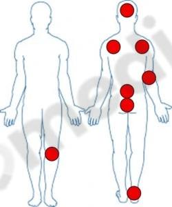 Miejsca najbardziej narażone na powstawanie odleżyn: