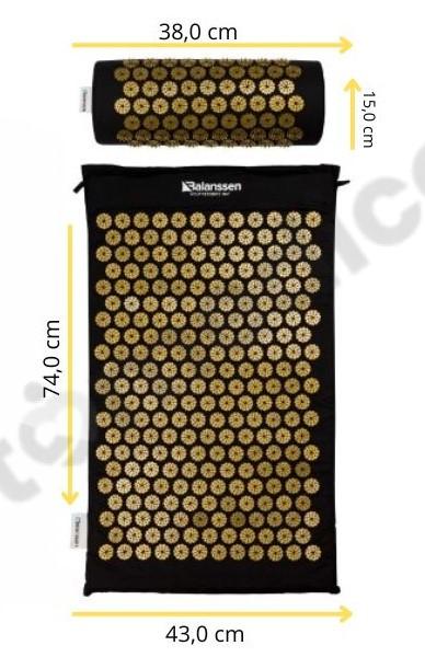 Mata do masażu o wielu zastosowaniach. Posiada wypustki, które pod wpływem nacisku ciężaru ciała masują poszczególne partie. W zestawie znajduje się również poduszka oraz worek do przechowywania wyrobu. Wypełnienie maty dopasowuje się do fizycznych cech oraz pozycji osoby korzystającej z produktu.